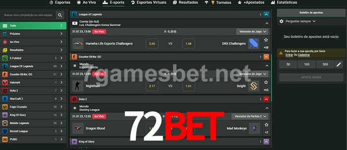 O 72bet oferece uma grande seleção de opções de apostas em e-sports com probabilidades competitivas
